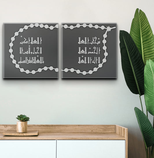 Canvas print - Set of 2 - Kufic Calligraphy Tasbih | SubhanAllah, Alhamdulillah, LaIlahaIllAllah, AllahuAkbar, La Hawla wa la Quawwata Illah Billah | Minimalist Design