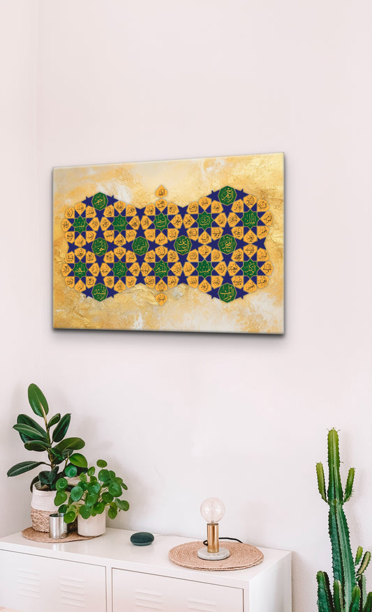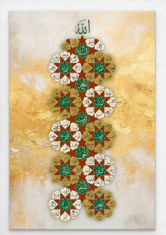 99 Beautiful Names of Allah (Asma Ul Husna) - Beautiful Portrait Canvas Print - Arabic Calligraphy