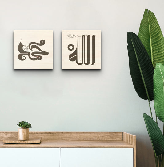 Qandusi Script Calligraphy Wood Print - The Lover and The Beloved - Allah and Muhammad (Peace and Blessings of Allah be Upon Him)