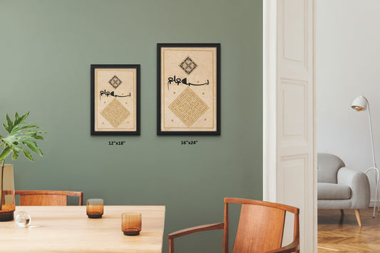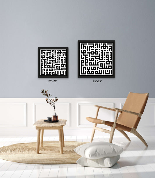 LIMITED SHA'BAN EDITION - Beautiful Square Kufic Arabic Calligraphy - (Qur'an 33:56) "Allah and His angels bless the Prophet. Believers, invoke blessings and peace on him."